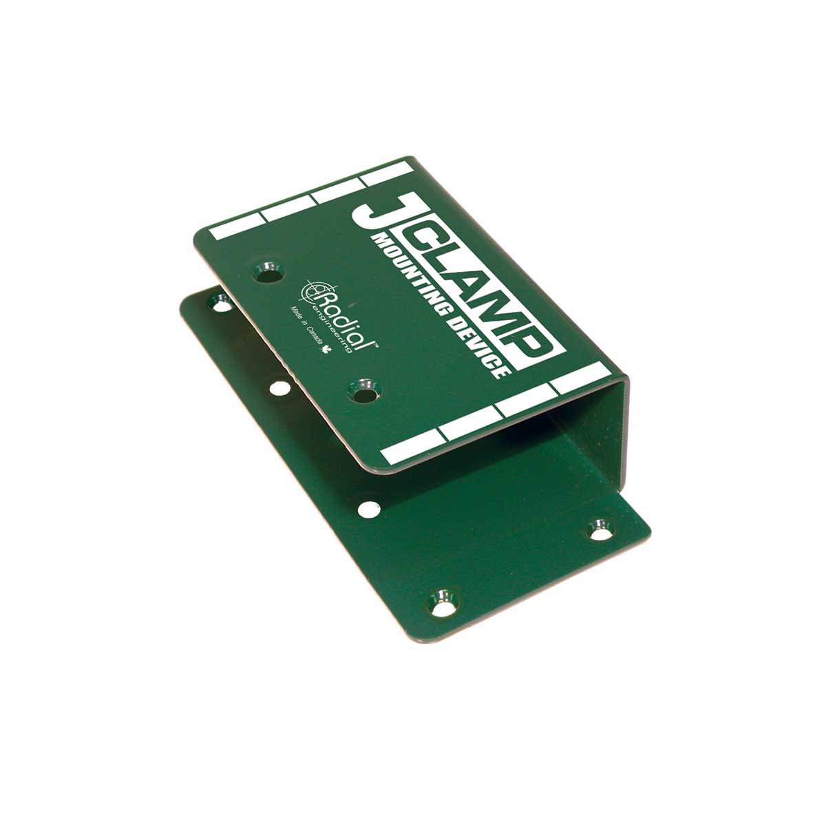 The J-Clamp is used to secure the JDI, J48, TwinIso and most other full-sized Radial products. You merely remove the four outer screws from the DI box, and slide the inner frame into the J-Clamp.