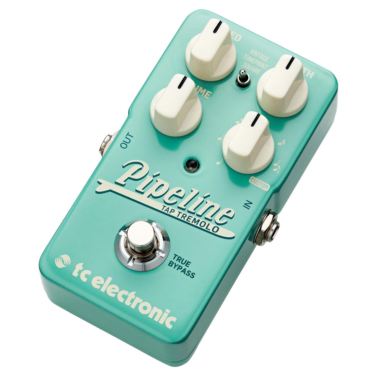 The Pipeline Tap Tremolo by TC Electronic, is a tremolo FX pedal stomp-box designed for guitarists. It features a very useful tap-tempo button, and a precise rhythmic subdivision encoder too. You can control the depth and speed of the tremolo effect, and there is a volume knob that allows you to boost 6dB of signal.