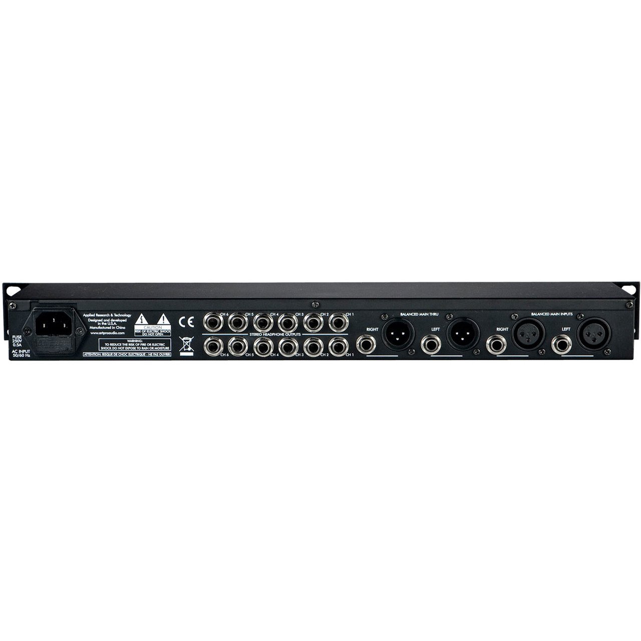 Six Independent High-Power Headphone Amplifier Channels Dual Function Balance/Mix Control per Channel Front Panel Stereo Aux Input for each Channel Multiple Monitoring Settings per Channel Individual Output Level Control per Channel Precision Four Segment LED Metering Per Channel Master Volume Control w/ Eight Segment LED Metering Front Panel Direct In Jack One Front and Two Rear Mounted Headphone Jacks per Channel Connects and Drives up to 18 Headphones Simultaneously XLR and 1/4" Main Inputs and Outputs Parallel Main Outputs for Multiple Unit Use