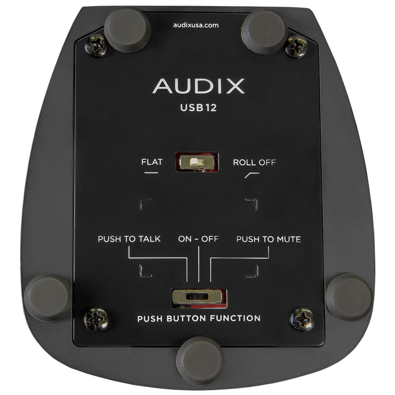 The USB12 Cardioid condenser microphone supports both 44.1k and 48k sample rates for playback and recording. This high-definition condenser microphone features a push-to-talk button, “steady on” or “momentary on” as well as a headphone jack for real-time monitoring. The USB12 is also equipped with a bass roll-off filter to control unwanted low-frequency signals.
