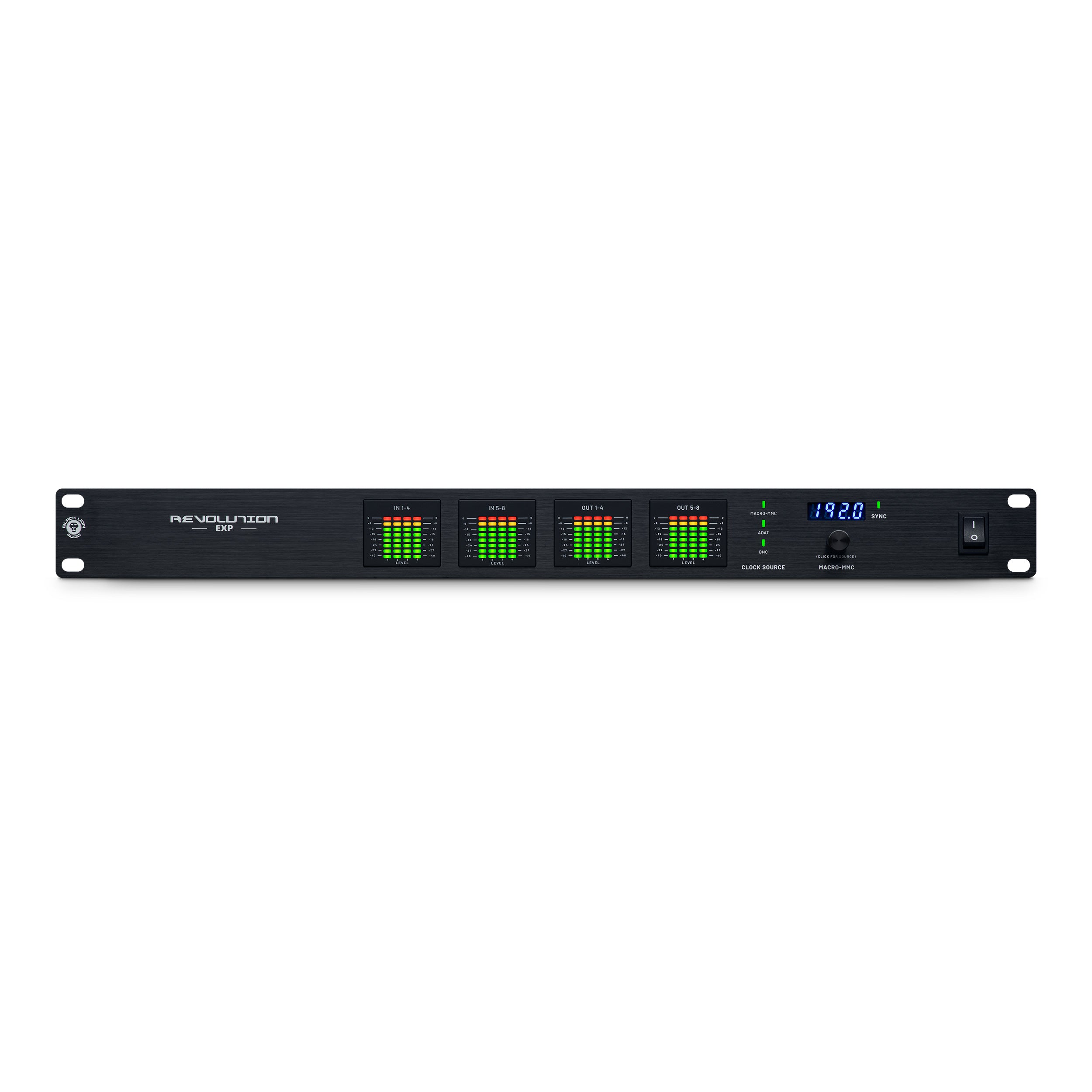 Elevate your studio setup with the Revolution EXP. This state-of-the-art device seamlessly integrates with ADAT-compatible interfaces, providing expanded connectivity options. Its 16 analog TRS connections (8-in, 8-out) and 16 channels of ADAT I/O make it a robust addition to any recording environment.