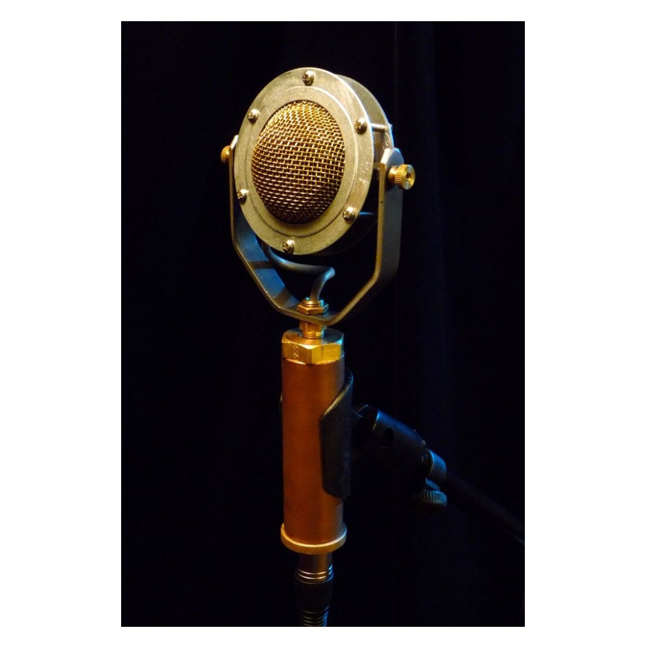 She has a large diaphragm cardioid condenser capsule mounted in a moderate sized retro-industrial head basket made from plumbing flanges and stainless steel bolts, which is suspended in a pivoting bracket for maximum positioning flexibility. This means she can work as an upright, side-address lollipop style, or as an end-address, with a simple twist of the pivot. She strikes the perfect balance on stage with her distinctive but not dominating looks. A great-sounding mic for stage or studio; vocals, overheads, room, acoustic instruments or electric cabinets.