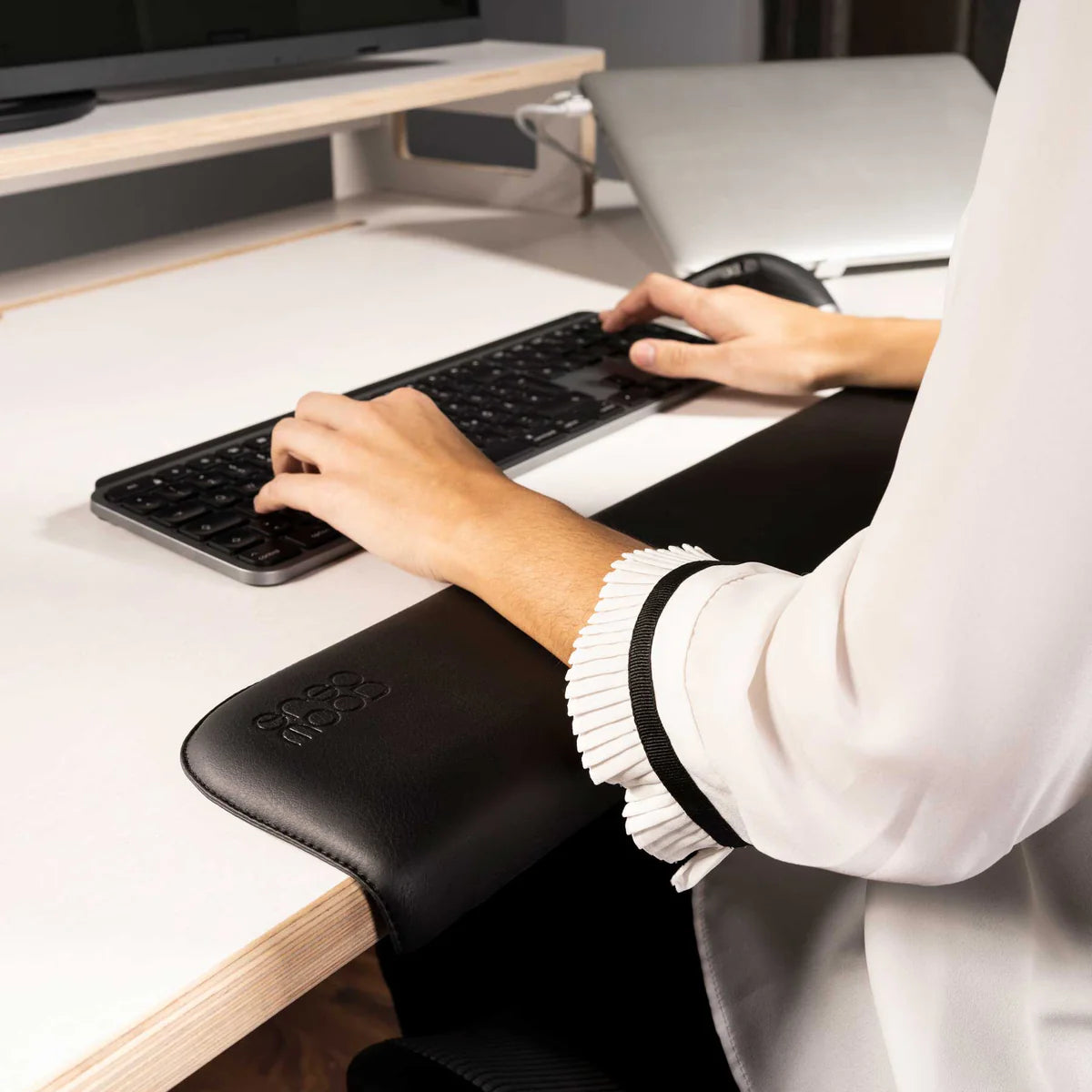 Your compact comfort zoneThe Armbed® will remove the hard edge off your desk and position your forearms and wrists at an ideal angle. Those long Zoom calls or email sessions will be easy on your wrist, forearms and elbows! Attaches with magnets and will change your life and work space.