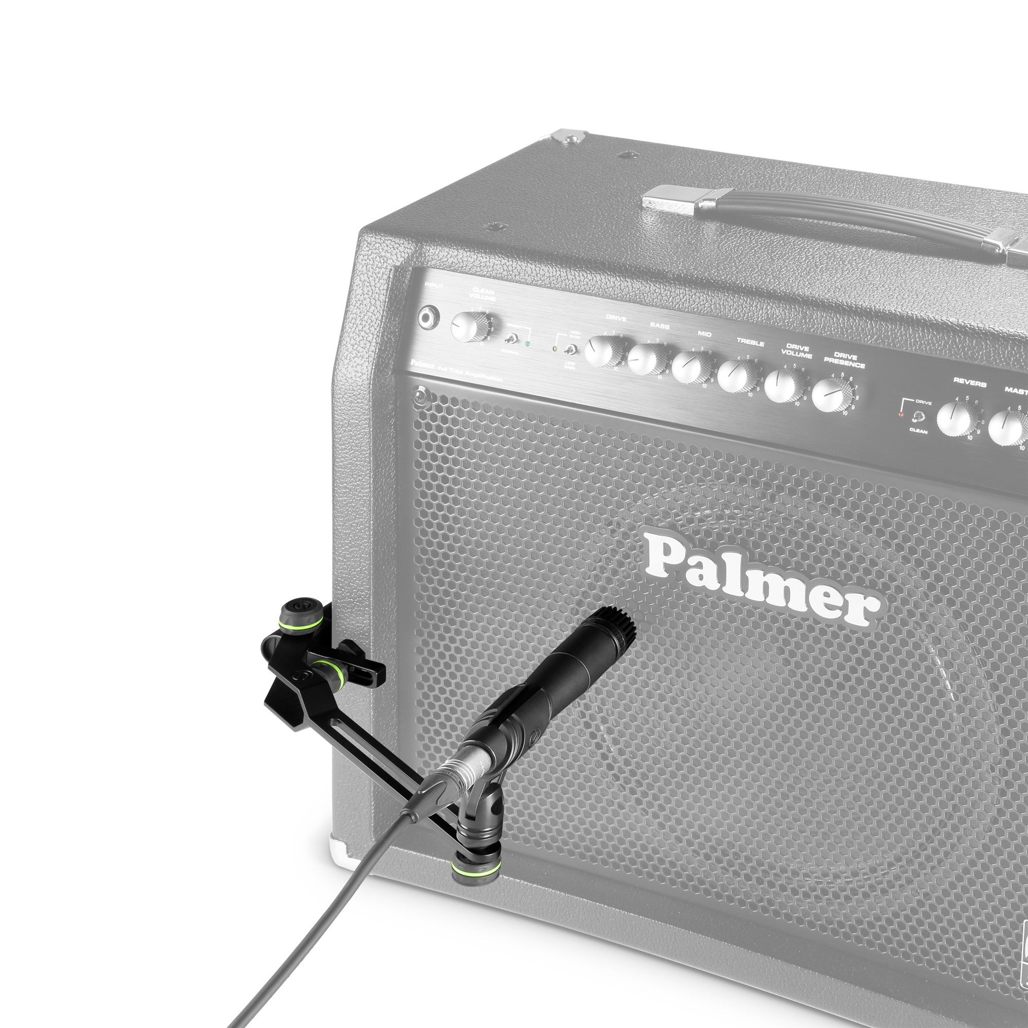 This universal clamping system allows you to mic up a guitar cabinet in an easy and revolutionary way. The spring-loaded clamping arm makes the clamp suitable for almost any type of cabinet and securely fastens to the side or top of a cabinet or combo amplifier. Thanks to its adjustable edge grip, the clamp can be adjusted to fit snugly onto recessed edges. The rigid boom is finely adjustable in both boom angle and microphone depth – this ensures a far more precise and secure mic placement as opposed to using a gooseneck-based clamping system or conventional mic stand.