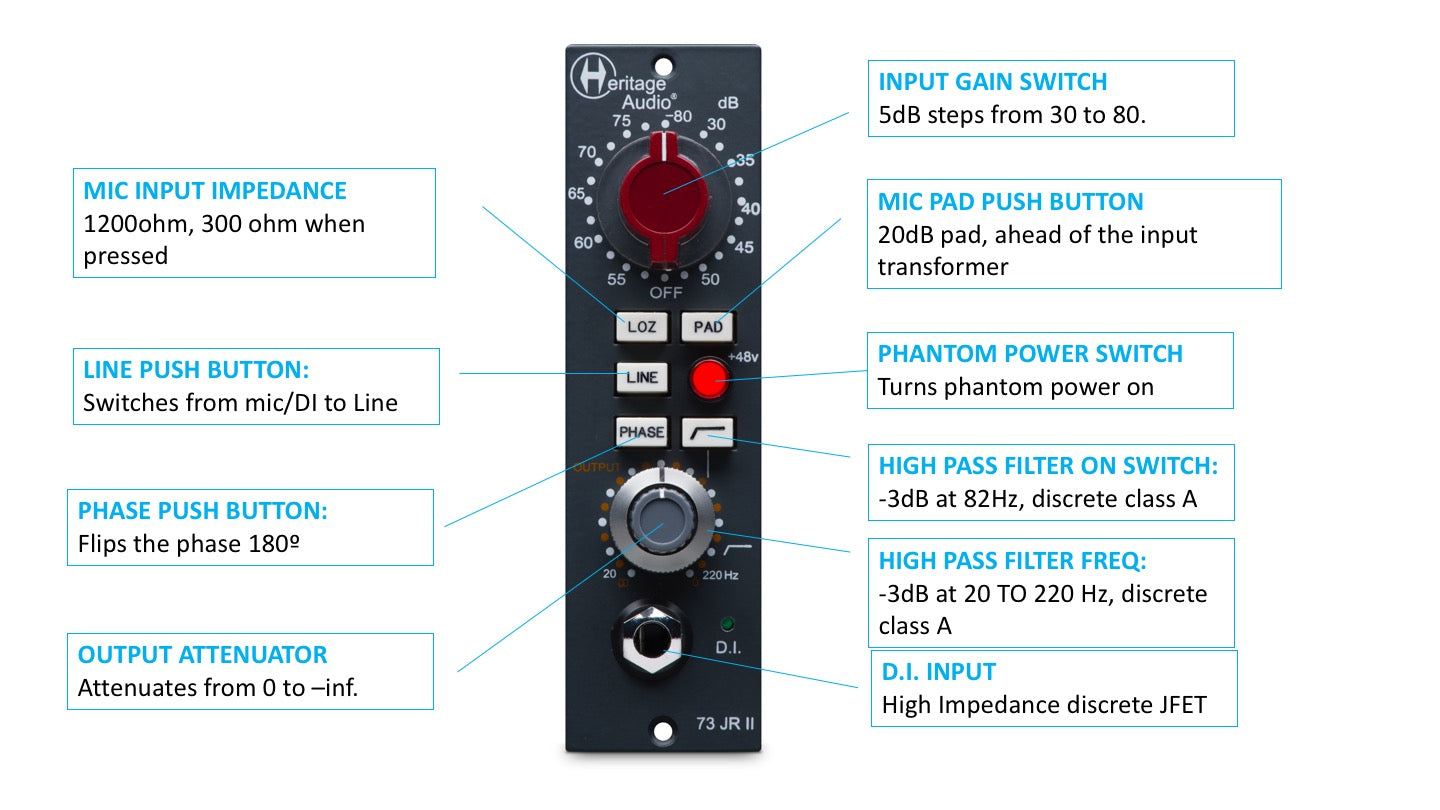 There are several compromises usually made when adapting a 73 preamp for the 500 Series, especially the following 3. You won´t find any of these in the 73JRII: