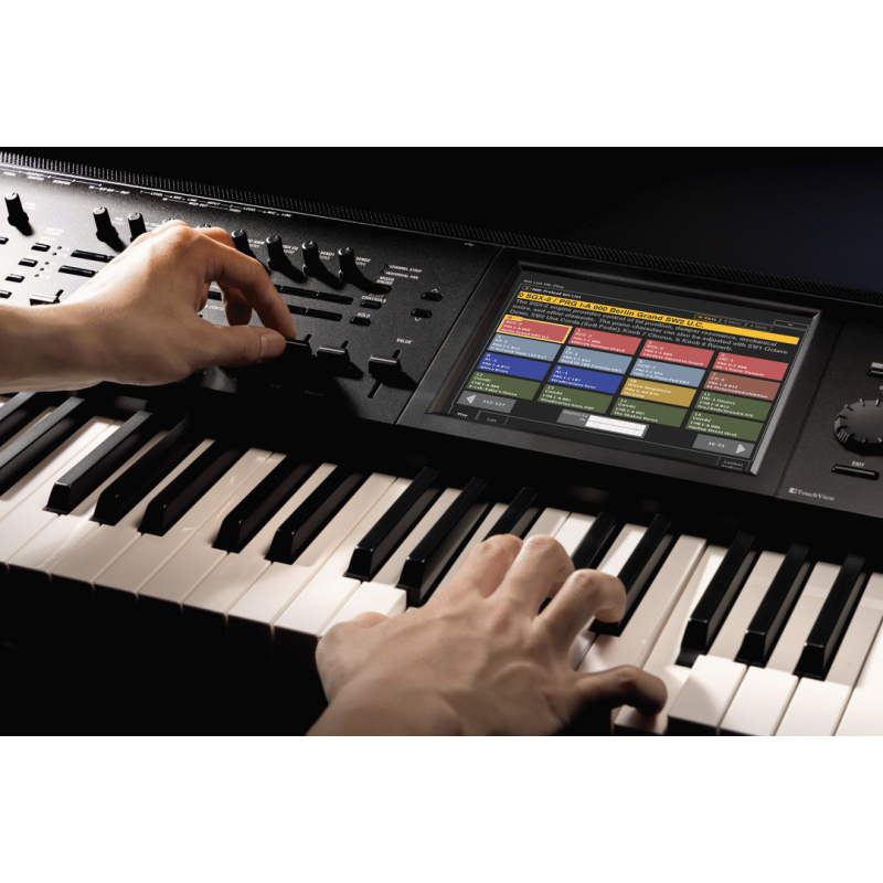 Streamlined Control, Unparalleled Intuitiveness: The KRONOS control system has been meticulously refined over generations to deliver a performance interface as intuitive as it is powerful. Its layout—featuring eight real-time knobs, nine sliders, and a suite of performance controls—remains comfortably familiar, empowering musicians to focus on their craft and perform intuitively. At the heart of the interface lies the large, responsive TouchView display, now faster and more responsive than ever and offering at-a-glance access to vital information and settings. This seamless design ensures anyone familiar with previous KRONOS models can effortlessly dive in.