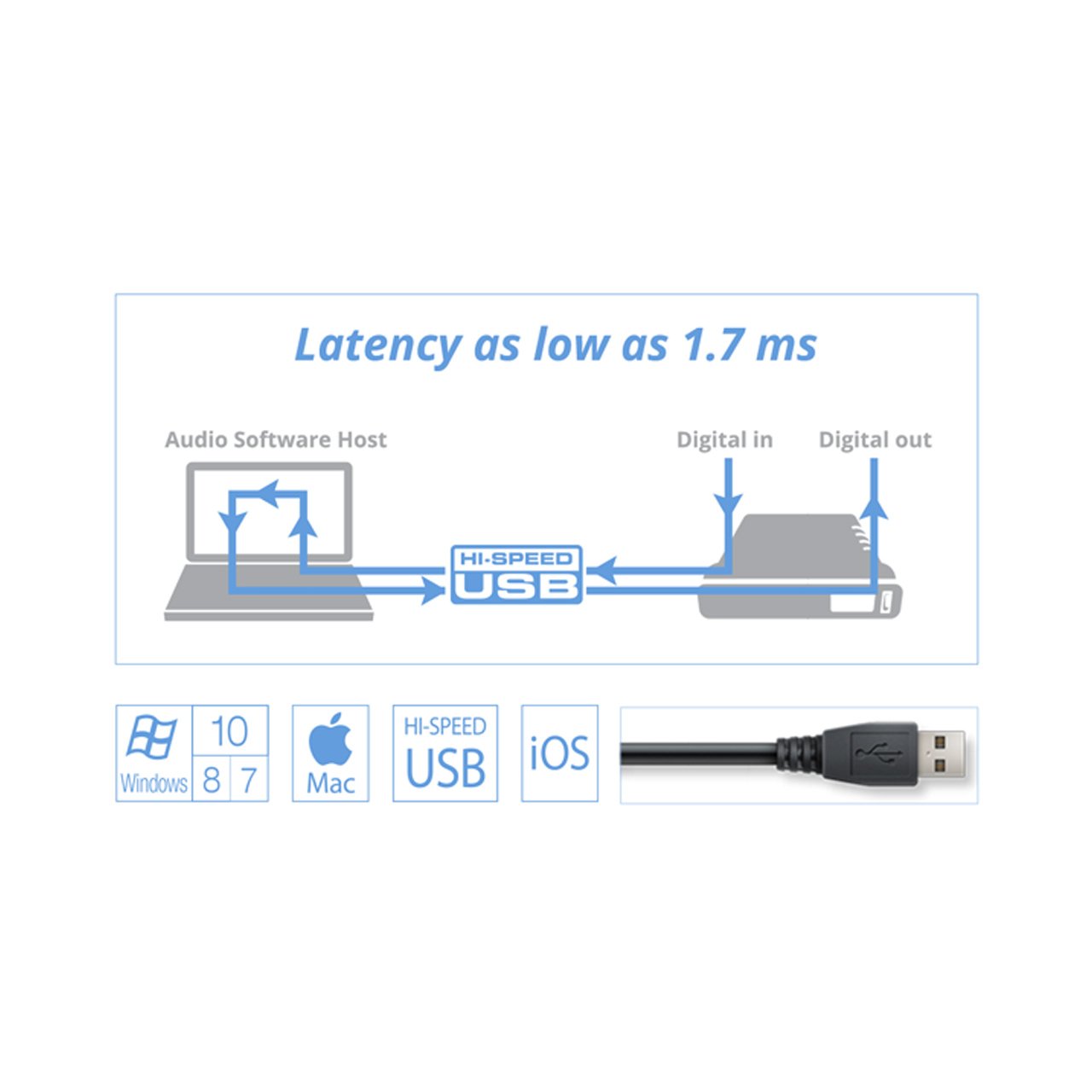 Universal connectivity over high-speed USB 2.0 (3.0 and iOS compatible) and AVB. Renowned drivers deliver industry-leading low latency and rock solid performance.
