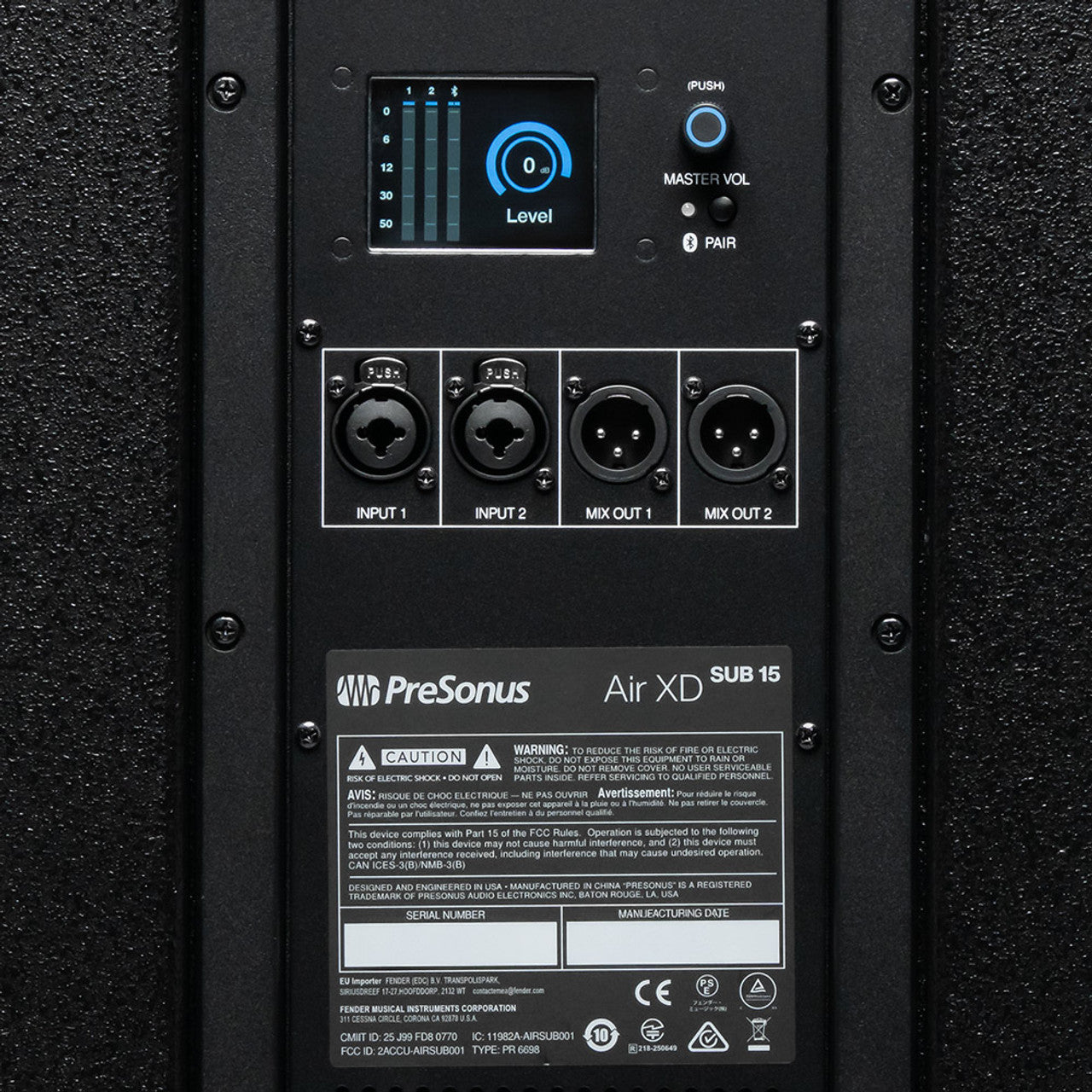 The PreSonus AIR XD Sub 15 is a high-performance active subwoofer designed for professional use, delivering deep, extended low-end and high SPL for any application. Its custom 15-inch low-frequency driver with enlarged 3” voice coil provides efficient power handling and tight, dynamic bass with minimal distortion, while advanced tuning options—including variable lowpass filtering, alignment delay, and cardioid/end-fire array presets—allow precise control of low-frequency performance in any setup.