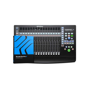 A superior solution for anyone who mixes in the box, only the FaderPort 16 provides 16 100 mm touch-sensitive, motorized faders in a compact chassis that easily sits on any desk. Like PreSonus®' popular FaderPort 8, the FaderPort 16 features digital scribble strip displays; mute and solo for every channel; complete automation and transport control; plus level, pan, send, and plug-in control modes for every fader. The unique Session Navigator makes mixing and controlling your favorite DAW application quick and easy by putting eight critical functions under your fingers, including navigation, zoom, and master fader control. The FaderPort 16 is compatible with virtually any DAW host for Mac® or Windows®, with support for HUI and Mackie Control, including customized Mackie Control modes for Logic, Cubase, and Sonar. Its native Studio One Pro support provides even more functionality with PreSonus' easy-to-use DAW, including Control Link support as well as parameter follow, allowing you quick access to any control under your mouse. Its ergonomic design makes it a comfortable companion to your keyboard and mouse.