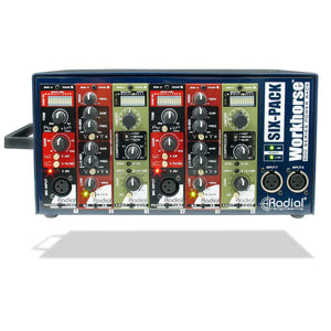 The Radial SixPack is a 6 slot 500 series rack, intended to be used with all 500 series modules. The design follows the original specifications as developed by companies such as DBX and API while incorporating new features for added flexibility and connectivity. As the SixPack does not buffer or amplify the signal in any way, the specifications are essentially straight wire. Thus it does not introduce distortion or artifact, nor does it introduce any form of personality into the signal chain. As a power-rack, the SixPack is unmatched delivering more current per slot with more features than all others.