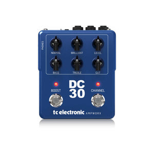 Dual-channel guitar preamp that faithfully recreates the sound of a 1965 top boost AC30 combo amp in a pedal with independent channel controls, pre/post boost, official Celestion cab sim IR and dedicated outputs for DI and headphones.
