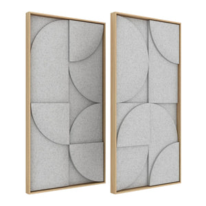 The diptych VicShape 3D Duo are relief art panels elaborated from three layers of PET HD for sound absorption enclosed in a high-quality premium frame in natural oak veneer.
